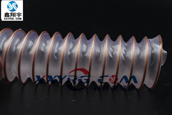 產品特點:半透明PU管壁, 帶鍍銅色包塑鋼絲螺旋加強 -40°C / + 90°C (短時間可耐受125°C) 聚酯型聚氨酯(ESTER PU)軟管, 帶鍍銅色包塑鋼絲螺旋加強筋。內壁平滑, 以保證物料在管內流動順暢. 和傳統的橡膠軟管和PVC軟管相比具有極高的耐磨度和使用壽命。不同規格產品的壁厚相同, 均為0.9毫米。耐礦物油、耐化學品。具有優異的耐臭氧和耐候性,低溫下仍能保持很好的柔軟度。不含鹵素,符合RoHS環保指令要求,原材料符合 REACH的規定。螺旋鋼絲接地可以排靜電, 符合TRB S 2153的排靜電標準。 用于顆粒、磨損性粉末、刨花或鋸末的抽吸和傳輸。適合塑料行業、陶瓷行業的物料傳輸或除塵等。在掃地車、路面清潔車、除草機等設備上也得到廣泛的應用。