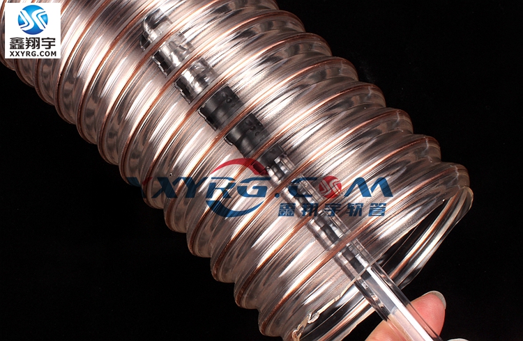 pu通風(fēng)吸塵鋼絲軟管具有較強的耐磨特性,輕型,具有一定的伸縮性和壓縮比,可排靜電,可定做阻燃型、食品級軟管。