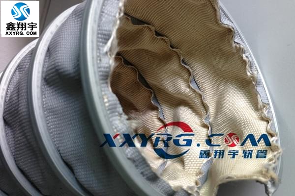 用途:各種特殊機械.高溫鍋爐,熾熱氣體排放等。耐高溫風管采用以(多層)特殊玻纖維,熱隔絕纖維加高溫涂層,及高強力纖維線,用金屬夾夾住材料上下端生產而成,外觀更漂亮,表面金屬圈可承受任意拖拉而不會對管壁造成影響。質量超輕,適合各種通風排風等處使用,非常強韌,彎曲半徑約等于外徑;壓縮比為1:5。