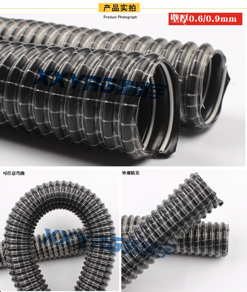 原料:管壁:柔軟PVC,螺旋絲:硬質PVC;